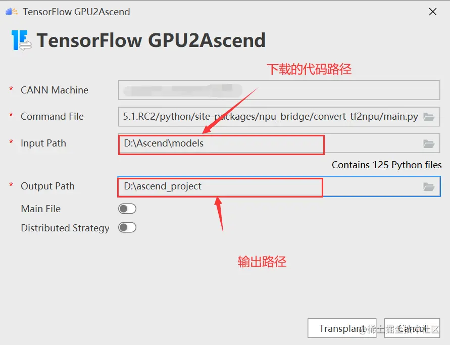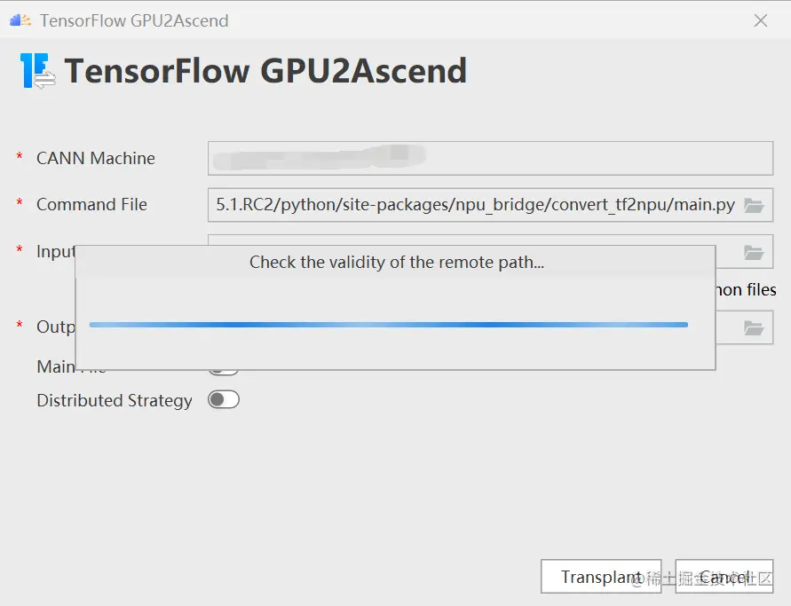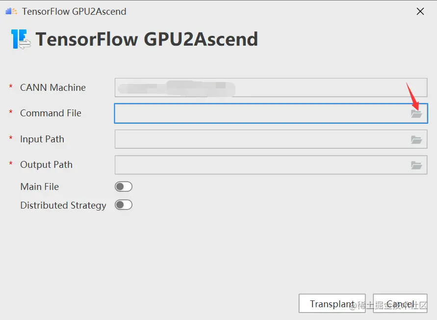 进入“TensorFlow GPU2Ascend”参数配置页,配置command file
