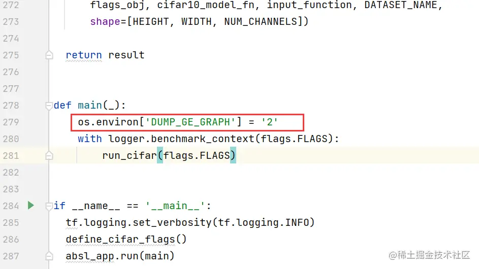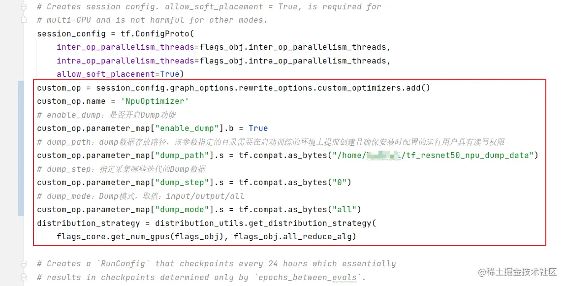 修改训练脚本(resnet_run_loop.py),开启dump功能。在相应代码中,增加如下方框中的信息。
