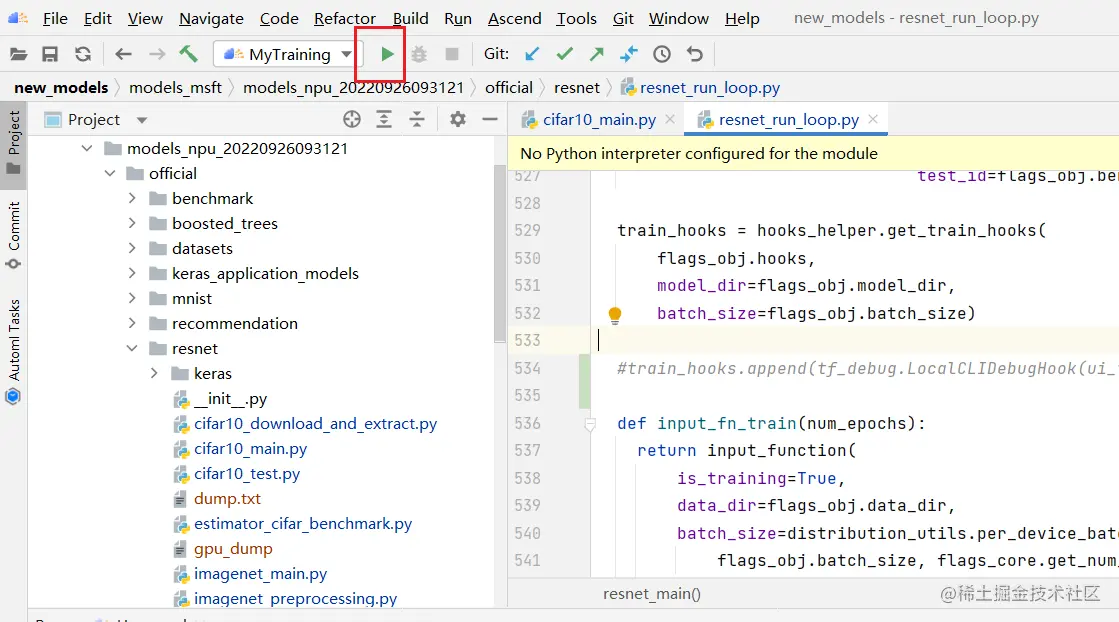 - 进入resnet所在的目录,cd ~/models/official/resnet