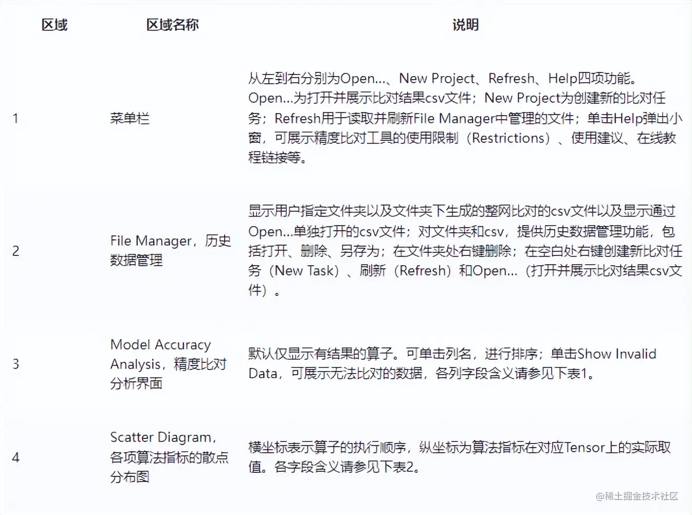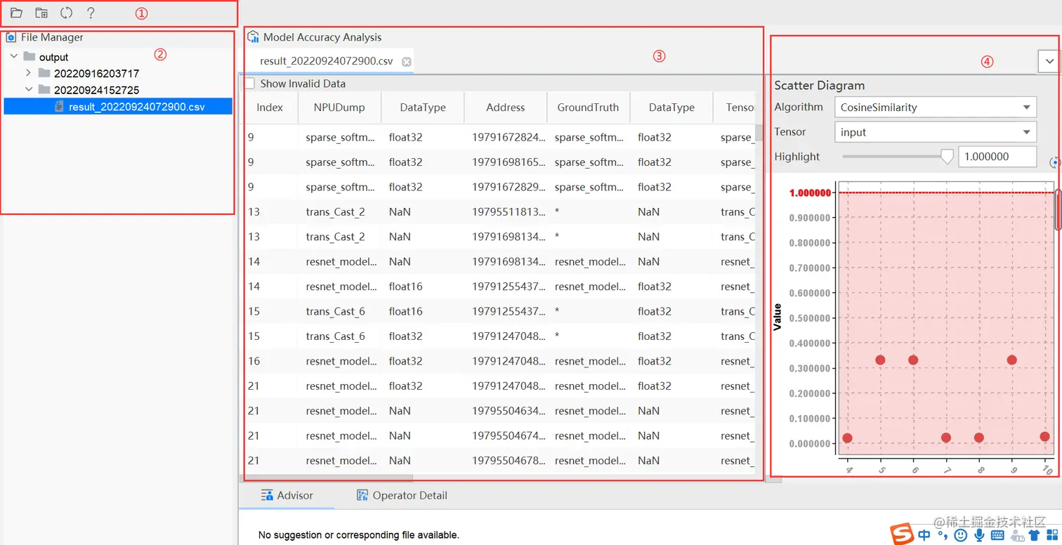 - 精度比对:可以用来比对自有模型算子的运算结果与Caffe、TensorFlow、ONNX标准算子的运算结果,以便用来确认神经网络运算误差发生的原因。