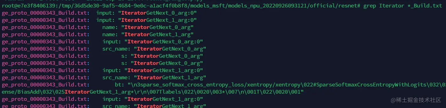 在所有以“_Build.txt”为结尾的dump图文件中,查找“Iterator”这个关键词。记住查找出的计算图文件名称,用于后续精度比对。