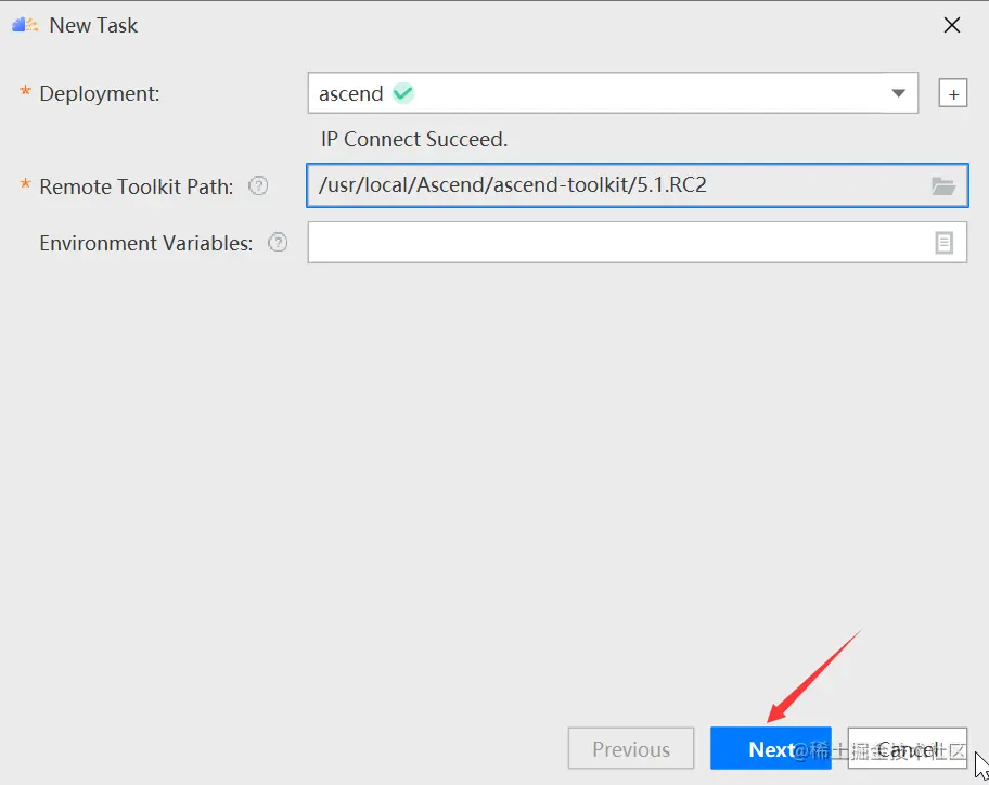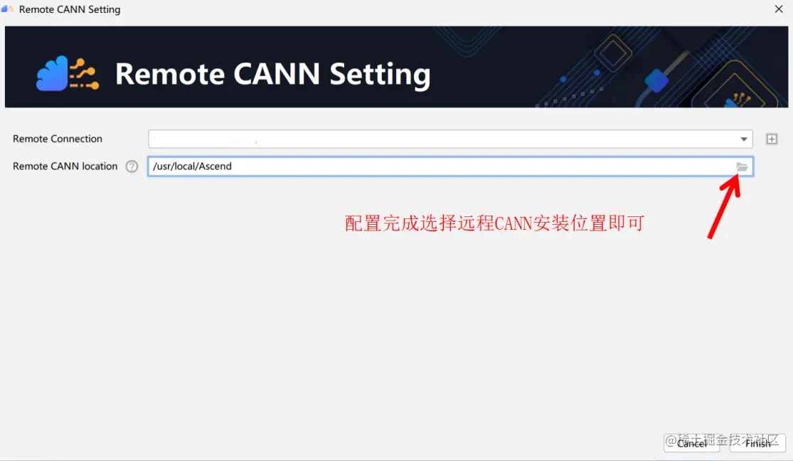 选择远程 CANN 安装位置,如下图所示: