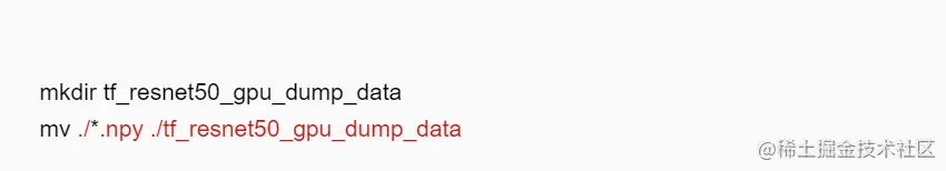 退出tfdbg命令行,将生成的npy文件保存到tf_resnet50_gpu_dump_data(用户可自定义)目录下。