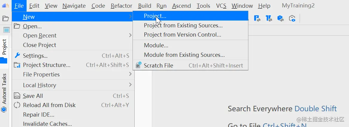 单击菜单栏“File > New > Project...”弹出“New Project”窗口。