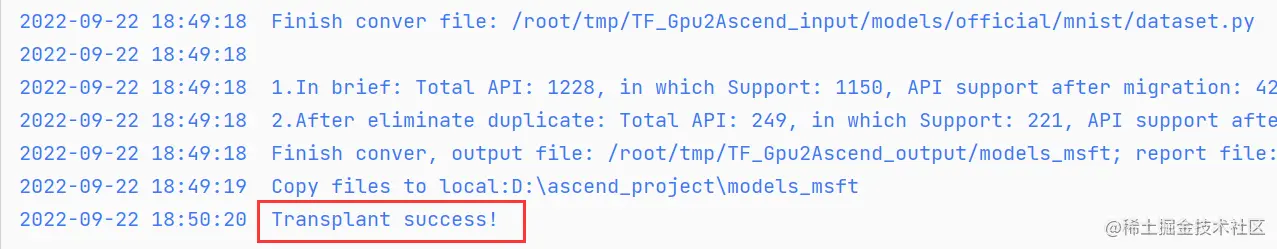 出现“Transplant success!”的回显信息,即转换成功。如下图所示: