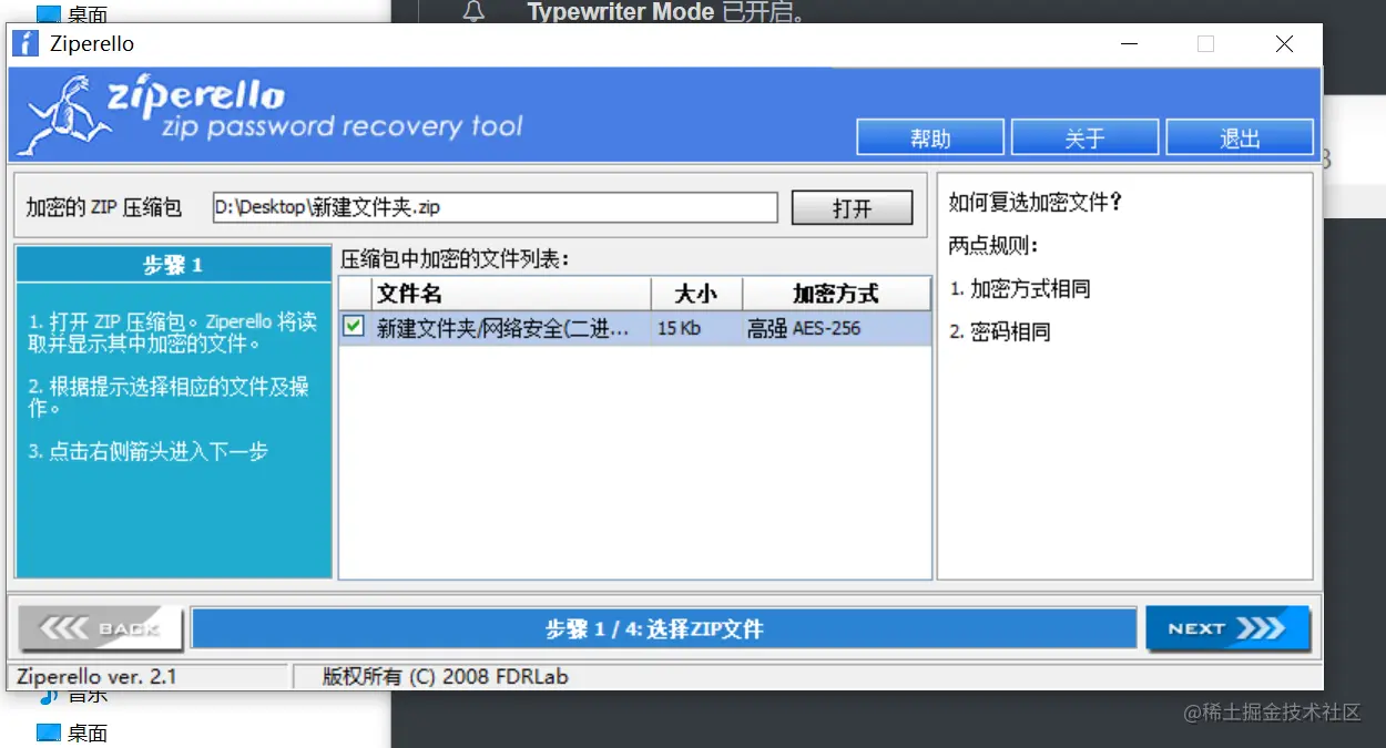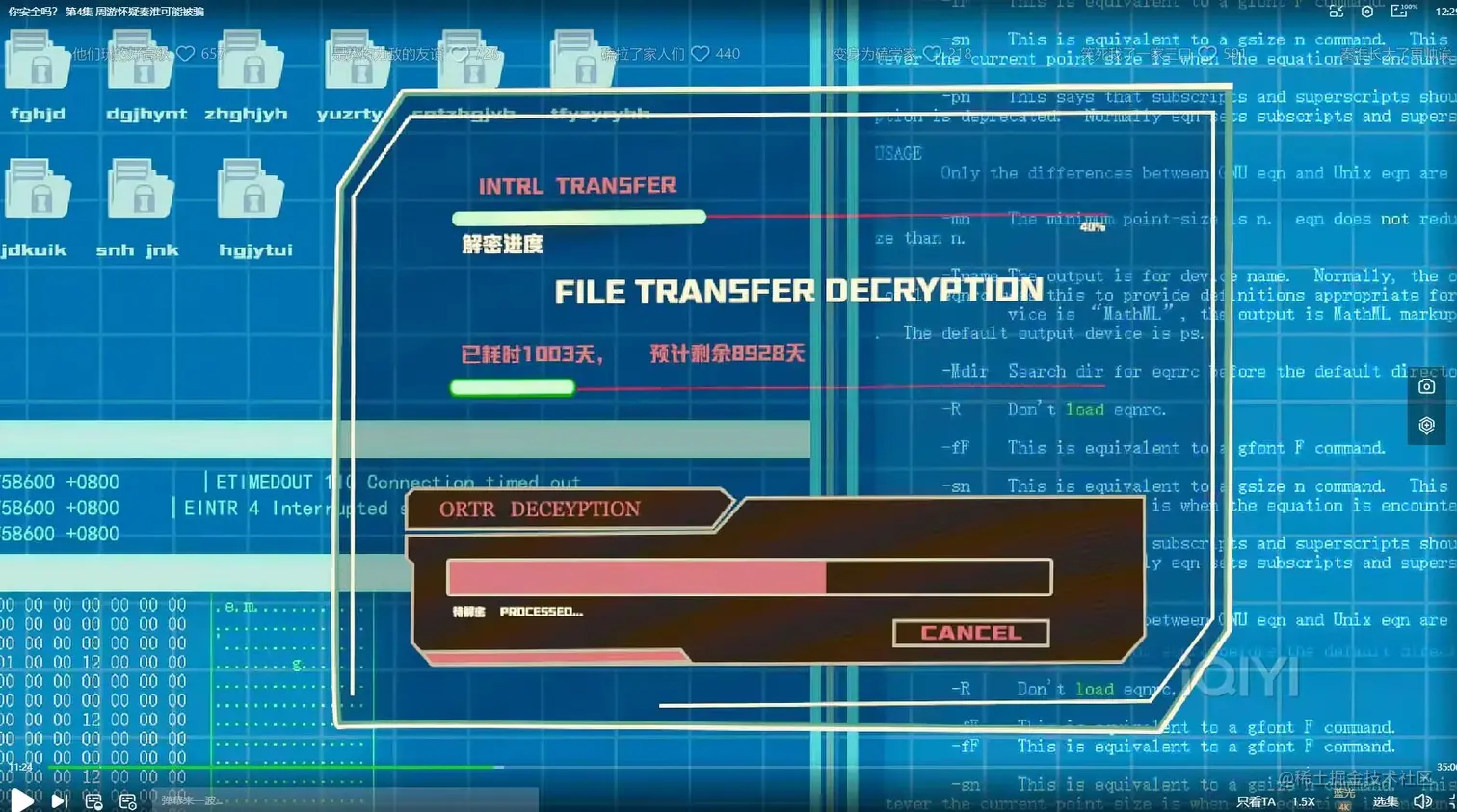 这个画面一闪而过,可以看到,在这个画面中可以看到一堆有锁的文件,还有“已耗时1003天,预计剩余8928天”,“FILE TRANSFER DECRYPTION(文件传输解密)”等字眼,我个人感觉这是一个伏笔,一条隐线。秦淮已经等待这个文件破解已经三年左右,还需要8928天,这条时间线很关键。哈哈哈,废话不多说,今天在这里,给大家介绍一个东西--压缩包密码破解工具(ZIP),就像秦淮正在做的事。