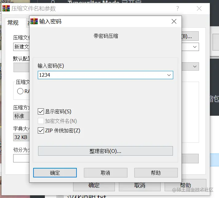 首先我们压缩一个文件,并设置简单密码用来做例子: