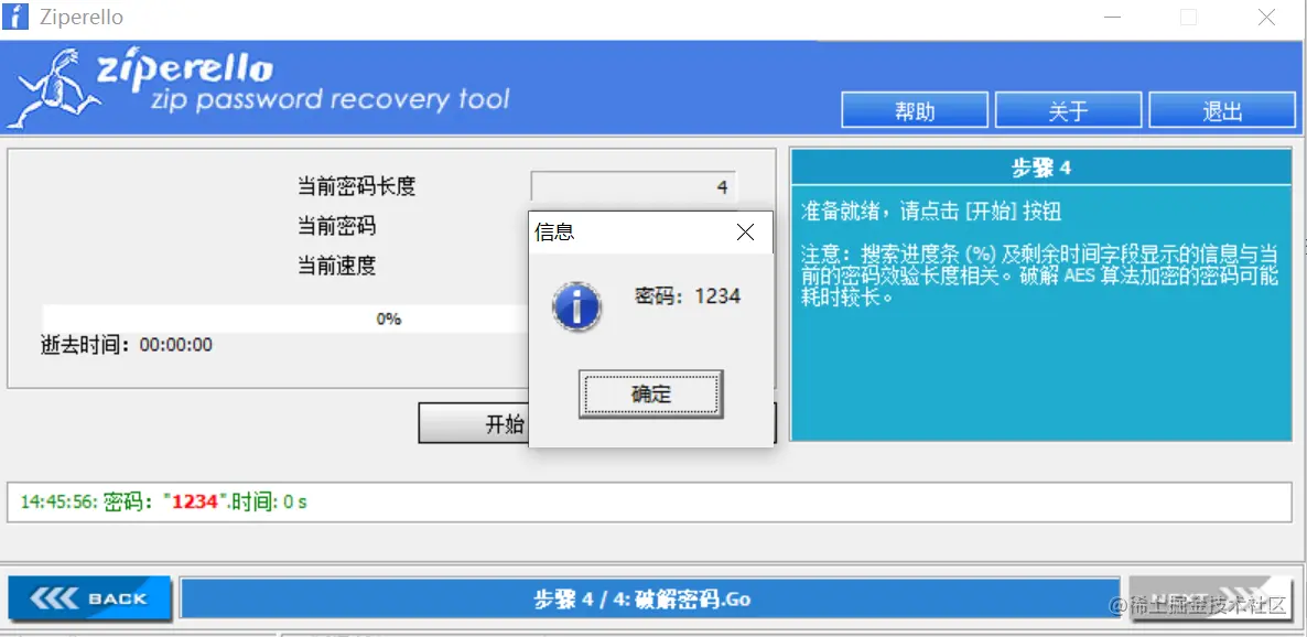 可以看到,密码已经被爆破出来,这就是一次简单的压缩包爆破例子。