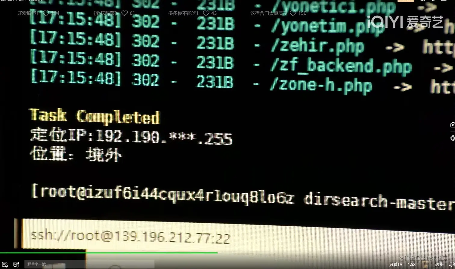 在电视剧《你安全吗》中,第三集和第四集开始出现一个情节,秦淮在找陈默,计算机系的双子星秦淮陈默,本来有着光明的未来,结果确实陈默在异地他乡捡垃圾做零工,让人百思不得其解。终于在第四集中,给出了答案。陈默母亲因为受到诈骗,钱被骗走,神情恍惚中出了车祸,于是陈默和秦淮准备找出这群诈骗团伙。经过30小时不眠不休的战斗,陈默找到了诈骗团伙互联网协议地址,即IP地址:
