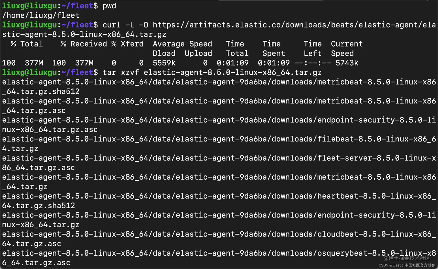 1. curl -L -O https://artifacts.elastic.co/downloads/beats/elastic-agent/elastic-agent-8.5.0-linux-x86_64.tar.gz