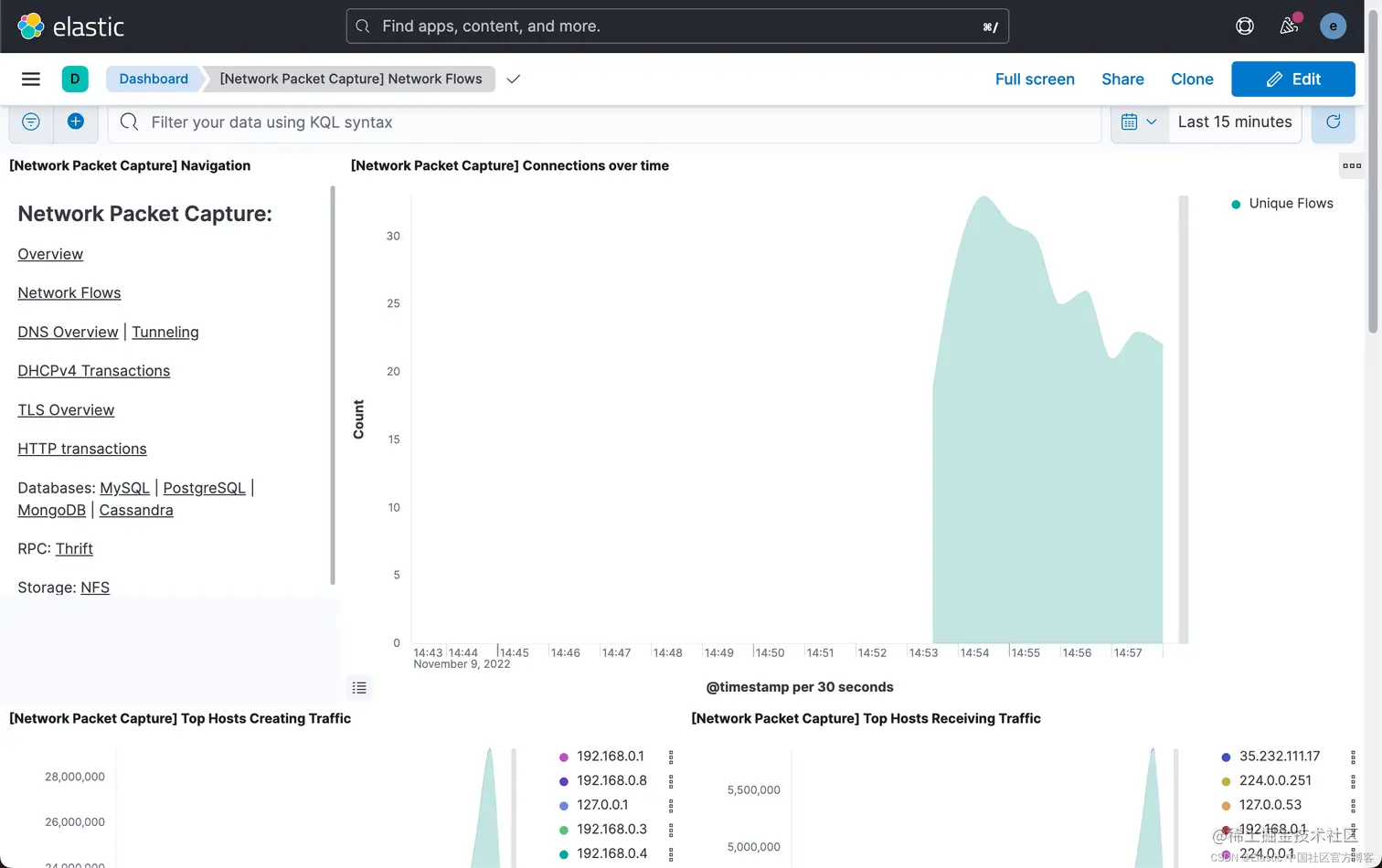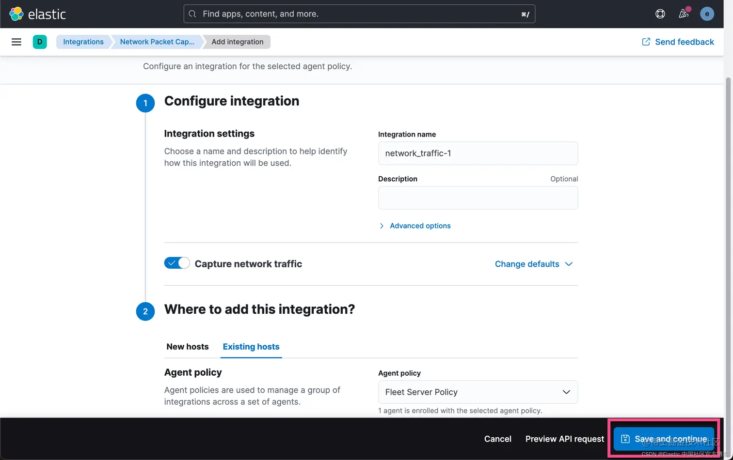 本教程将引导你设置集成,以便你可以从主机收集数据。 首先,你将网络数据包捕获集成添加到代理策略,然后你将在主机上部署 Elastic Agent 以收集网络数据包捕获数据。 Elastic 的集成不仅提供了一种添加新数据源的简单方法,