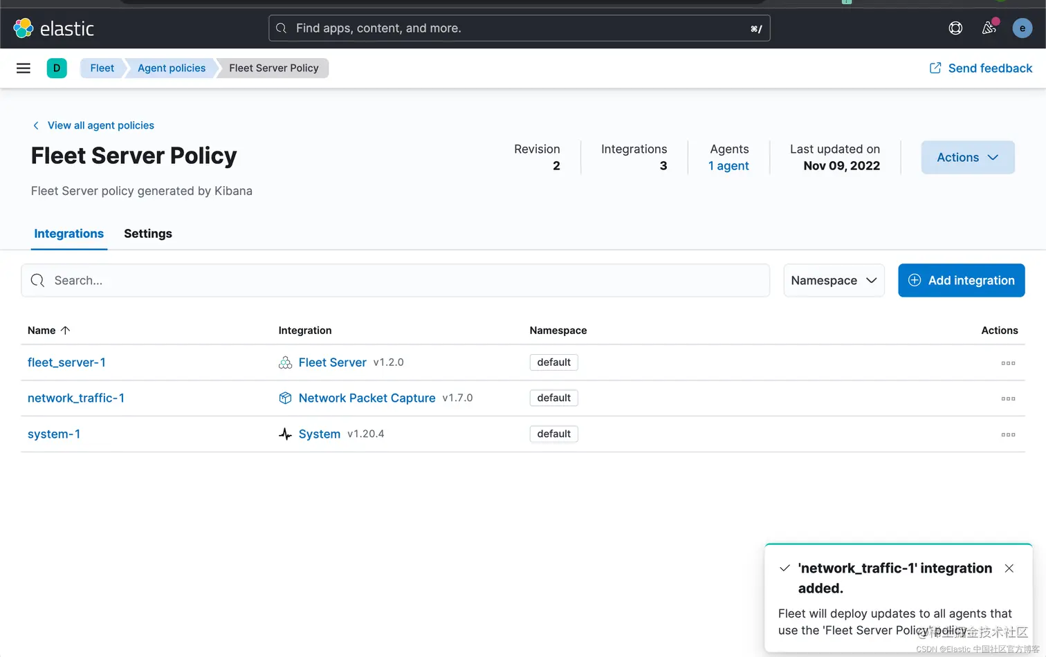 上面显示我们已经成功地把 network_traffic-1 集成添加到我们的 policy 中了。