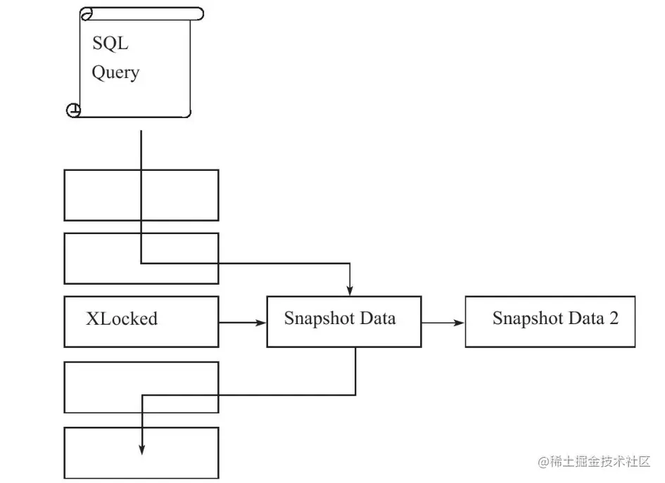 一致性的非锁定读(consistent nonlocking read)是指 InnoDB 存储引擎通过行多版本控制(multi versioning)的方式来读取当前执行时间数据库中行的数据。如果读取的行正在执行 DELETE 或 UPDATE 操作,这时读取操作不会因此去等待行上锁的释放。相反地,InnoDB 存储引擎会去读取行的一个快照数据,下图是关于快照数据的一个简单示图: