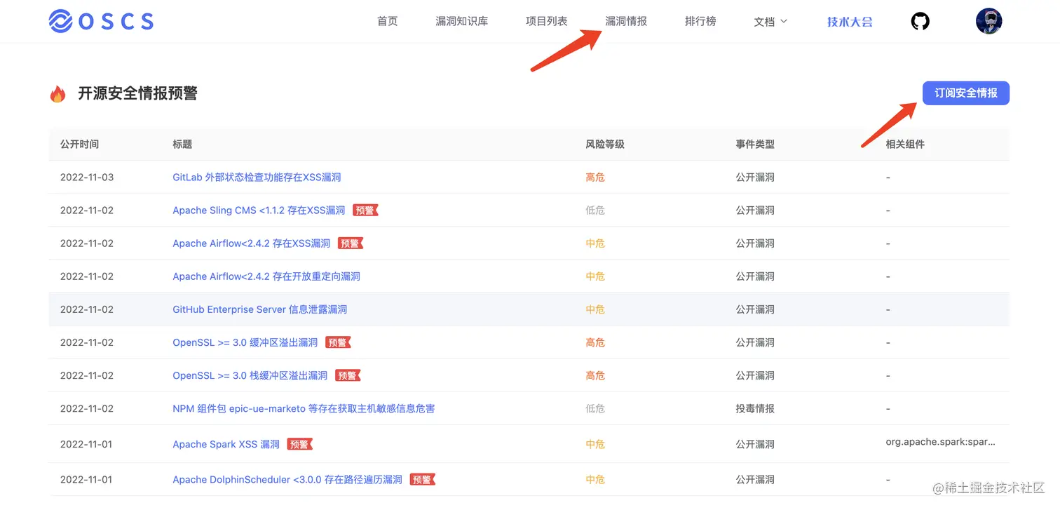 OSCS 已上线开源安全漏洞情报的免费订阅