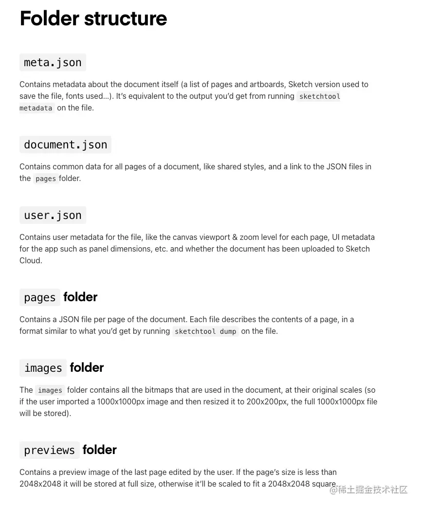对照找下官方对于文档(下方截图)的描述( 官方文档原文),认真阅读下,发现共享的数据会存储在document.json 文件中,只要解析document.json 文件就可以获取共享样式(shared styles)。共享样式:包括字体、颜色等。