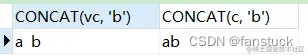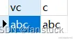 vc保存的字符串空格占位保留,而char则不保留尾部空格。我们再追加一个b: