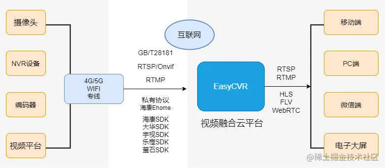 EasyCVR平台基于云边端一体化管理,可支持视频实时监控、云端录像、云存储、回放与检索、智能告警、平台级联等功能。平台在线下场景中应用广泛,包括智慧工地、智慧工厂、智慧校园、智慧社区等等。