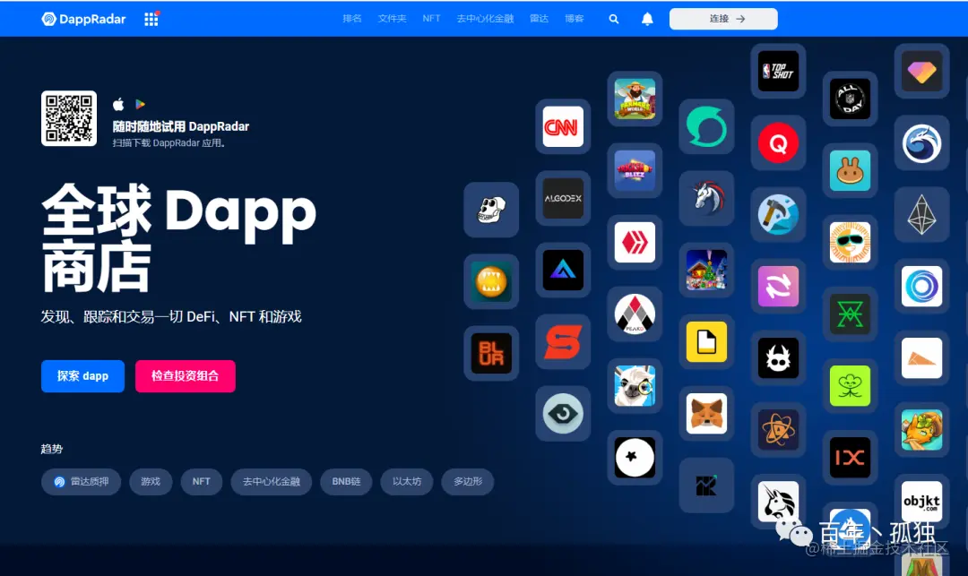 查看 DApp Radar 以查看 Defi(去中心化金融)和其他基于区块链的应用程序的真实示例