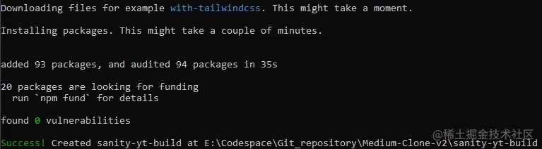 Sanity 官网登录,终端输入安装命令: