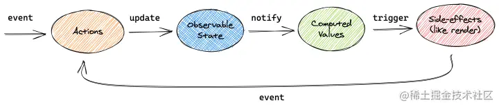 React v18.2.0 新增了 useSyncExternalStore hook【用于读取和订阅外部数据源】,通过使用该hook,将定义在 React 外部的可观察的状态 ( observable state ) 和 React Component Render 建立关联,state 上任意属性的变化都会触发组件的重绘。