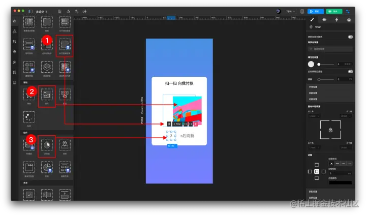 1.在搭建好的基础页面上,添加图片、动态数据容器和计时器组件