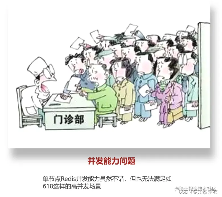 - 并发能力问题: 单节点Redis并发能力虽然不错,但也无法满足如618这样的高并发场景