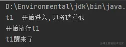 System.out.println("开始放行t1");