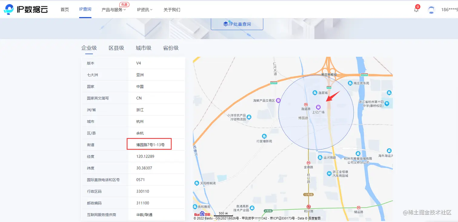 另外查询全球IP地址,可以试试IP数据云 ,国外可以精确到城市,国内可以精确到街道。