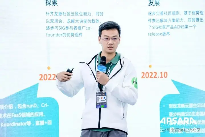 首先,阿里云资深技术专家、龙蜥云原生 SIG 成员刘奖,蚂蚁集团高级技术专家、龙蜥云原生 SIG Maintainer 彭涛为现场嘉宾带来《龙蜥云原生社区发展 & kata 社区共建》主题分享。