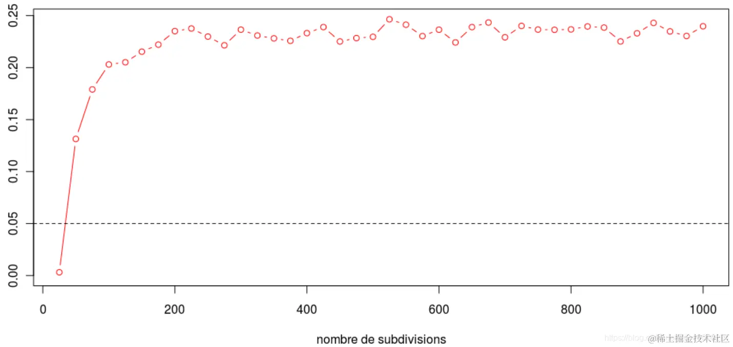 如果我们重复很多次,则通过更改时间步长(或时间间隔的细分数),实际上,如果时间步长很大(在左下方),我们将通常拒绝,指数定律也是如此。但是很快,这是一个不成立的假设,
