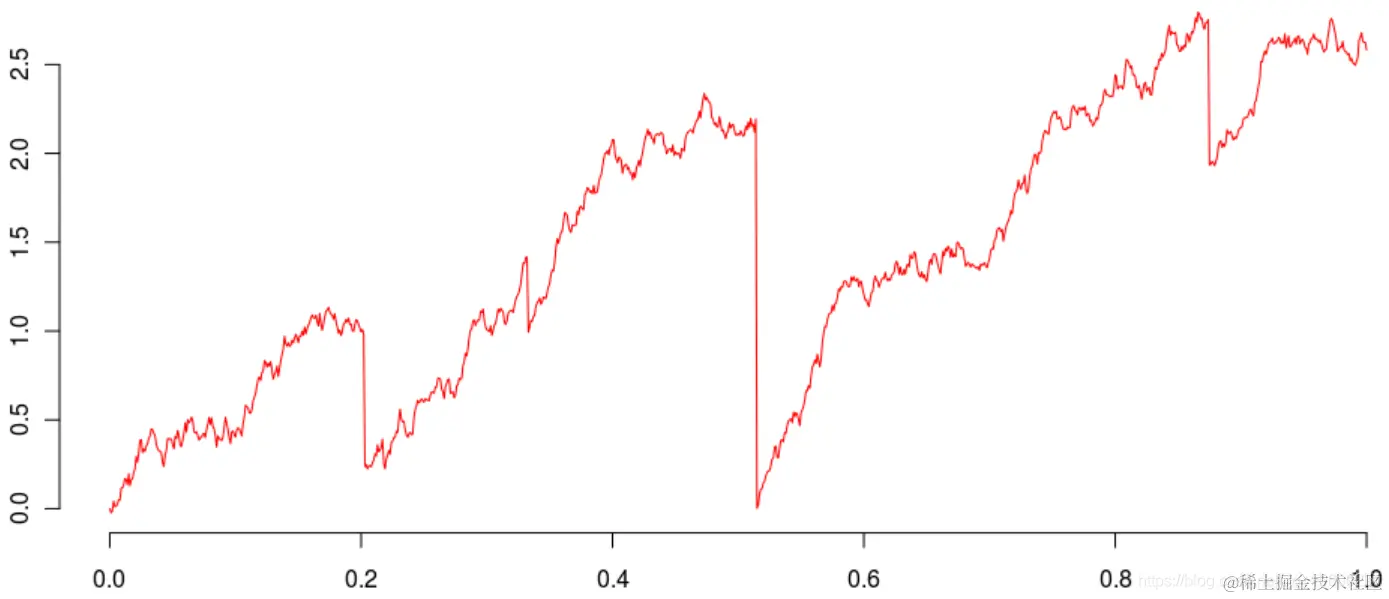 问题是对于维纳过程,我们必须离散化,而对于复合泊松过程,我们不能离散化。但是,他们有相同的时间范围。第一种方法是建立trunc函数
