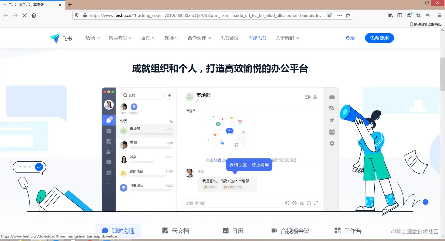 飞书是字节跳动于2016年自研的协作平台,将及时沟通、日历、云文档、云盘和工作台整合,让成员实现高效 沟通和流畅的协作,提高工作效率。飞书支持多端同步登陆,并且可以离线操作,不用连接互联网也可以进行操作,并且这个功能可以关闭,保障数据安全。