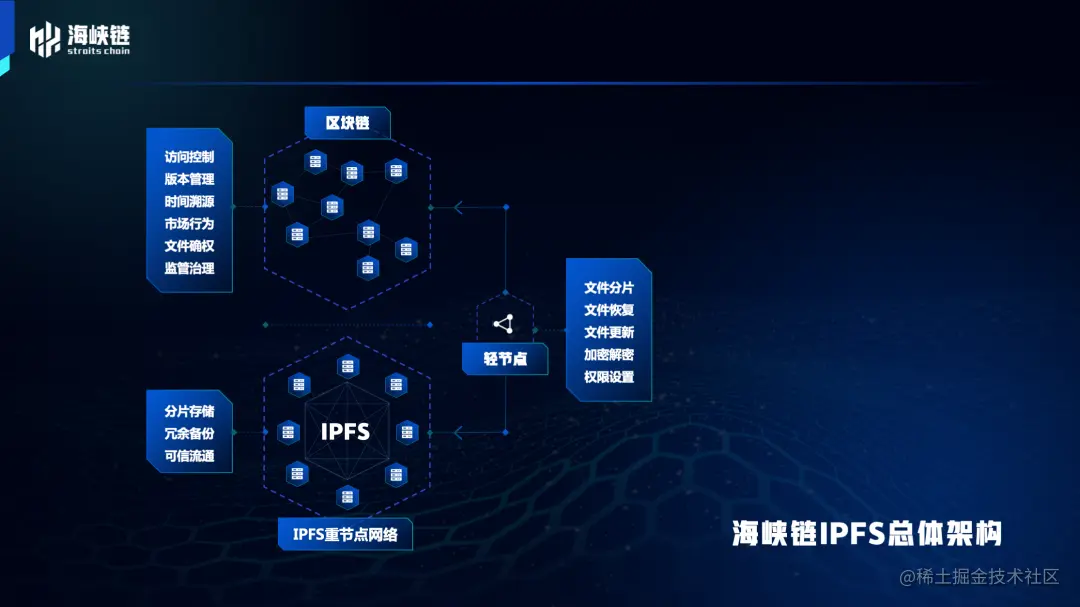 海峡链技术团队对IPFS进行深入研究后,对原生IPFS进行了多方面的改进,并将IPFS与海峡链进行了深度融合,自主研发了“许可IPFS存储网络”。开发者们可以在海峡链中轻松使用“许可IPFS存储网络”,为用户提供可信任的、不可篡改、公开透明的文件存储和管理服务。