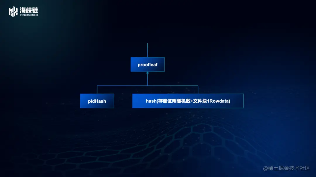 proofLeaf是存储证明树的叶子节点,使用节点pidHash,由存储证明随机数和文件块的rowdata生成。因此IPFS节点必须本地有存储文件片内容才能生成,只存储CID是生成不了的。而且也不能拷贝其他节点的证明。对于多个节点共享存储池的方案,只能提高其成本,无法避免。其中存储证明随机数即GEN阶段公布的storeChallenge,该随机数在一个epoch中是不变的,而在各个epoch间是不同的。如下为proofLeaf的计算方法,其中Hash()函数采用sha256。