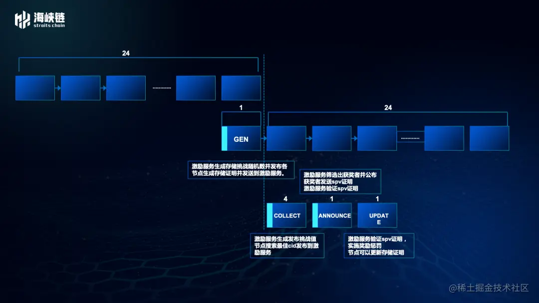 激励在区块链上完成,分为epoch和slot两类周期。每个阶段中,激励合约和重节点需要配合完成不同工作: