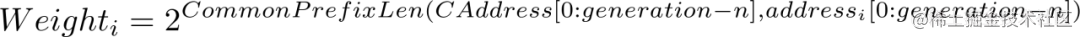 那么在抽奖时,每个节点将依据与该分片的逻辑距离分别获取20,21,22三种权重Weight,每个节点地址addressi 权重Weighti计算方式如下:
