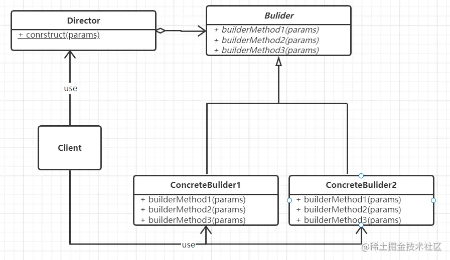 Direct角色负责使用Builder角色的接口来生成实例,他并不依赖于 ConcreteBuilder角色,它只调用 Builder 角色中被定义的方法, 即实例代码中的 construct 方法