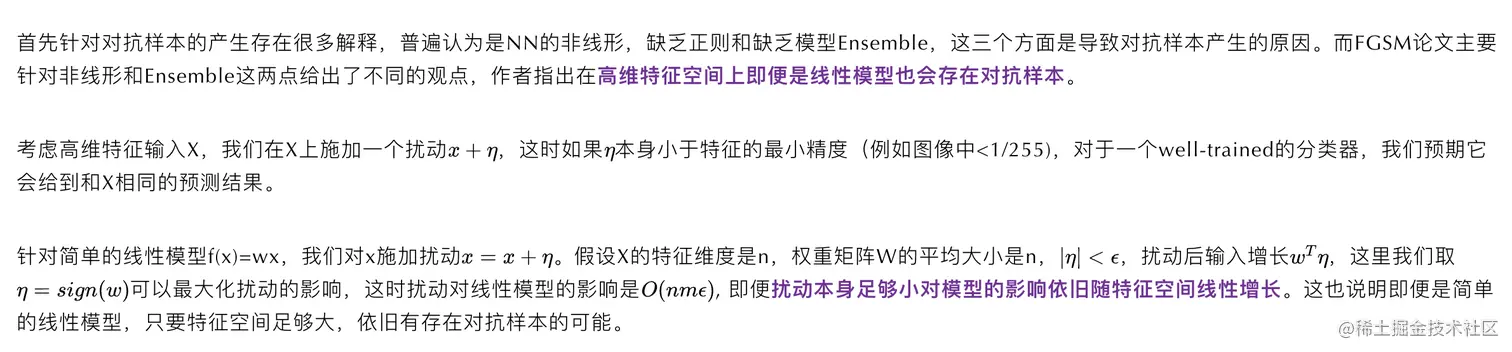 于是问题就被简化成了如何计算扰动。最简单的方案就是和梯度下降相同沿用当前位置的一阶导数,梯度下降是沿graident去最小化损失,那沿反方向进行扰动不就可以最大化损失函数。不过因为梯度本身是对当前位置拟合曲线的线性化,所以需要控制步长来保证局部的线性,反向传播中我们用learning rate来控制步长,这里则需要控制扰动的大小。同时对抗扰动本身也需要控制扰动的幅度,不然就不符合微小扰动这个前提,放到NLP可以理解为为了防止扰动造成语义本身产生变化。