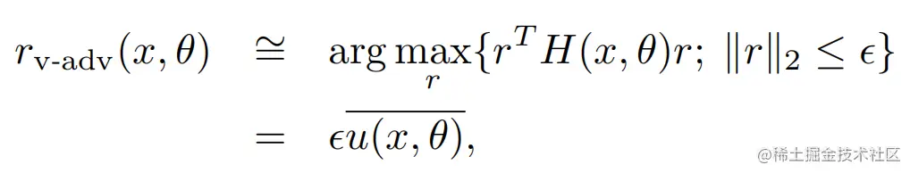 以上的虚拟扰动r无法直接计算,于是泰勒展开再次登场,不过这里因为把y替换成了模型预估p,所以一阶导数为0,于是最大化KL近似为最大化二阶导数的部分