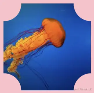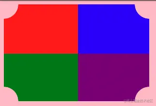 每个圆形切割部分占整个元素尺寸的四分之一。如上图所示,左上角切割代码如下: