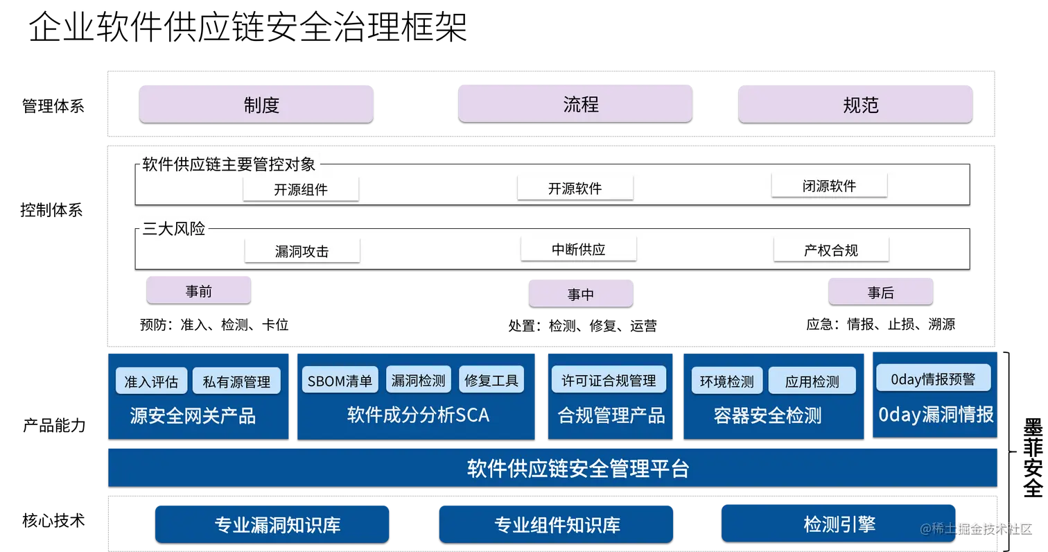 针对软件供应链安全,墨菲安全认为其企业安全治理框架如下: