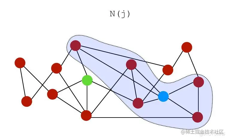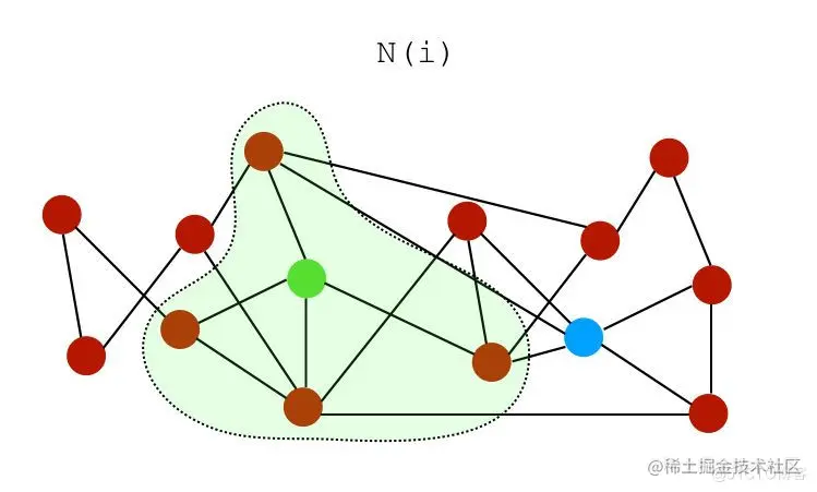 设是节点的一组邻居。在上图中,节点和的邻居可以表示为: