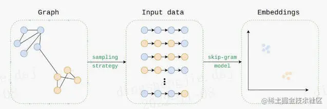嵌入的学习方式与 word2vec 的 skip-gram 嵌入的学习方式相同,使用的是 skip-gram 模型。问题是,我们如何为 Node2Vec 生成输入语料库?数据要复杂得多,即(非)定向、(非)加权、(a)循环……