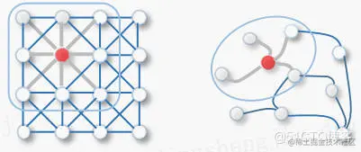 二维卷积类似于图,图像中的每个像素都被视为一个节点,其中邻居由过滤器大小确定。 2D 卷积取红色节点及其邻居像素值的加权平均值。 节点的邻居是有序的并且具有固定的大小。