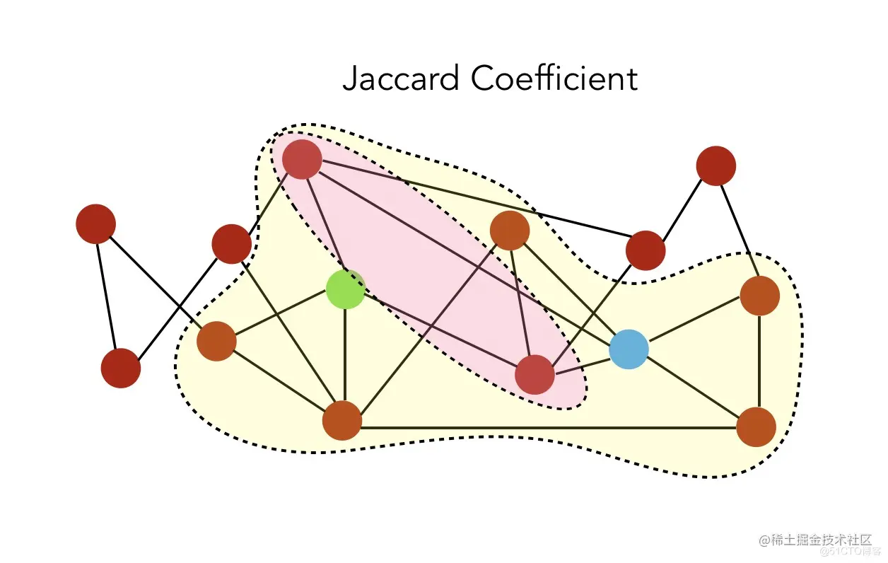 - Jaccard系数:,标准化的共同邻居版本。