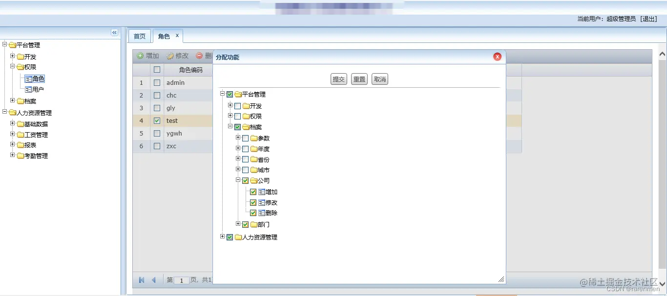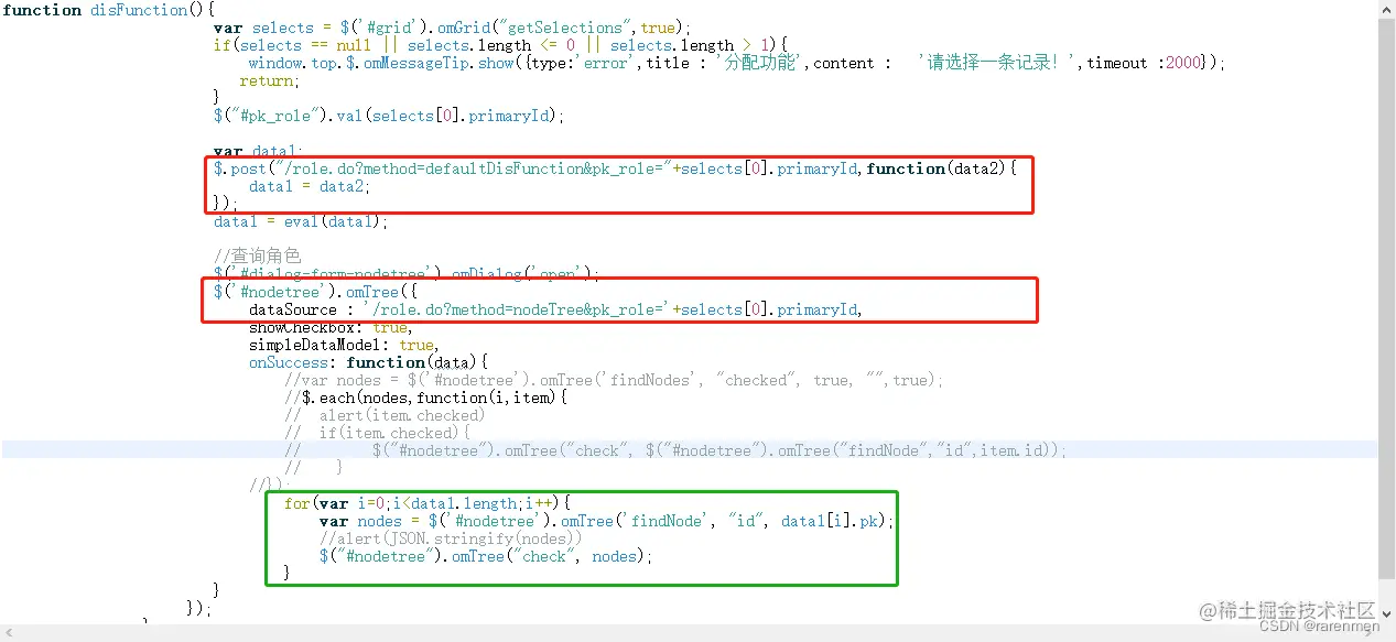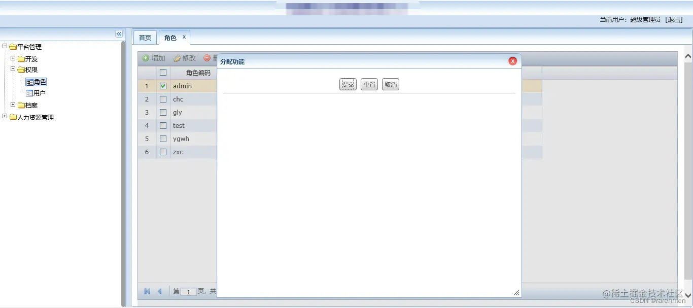 这么看,这个页面对后台发起了两次请求,第一次拿到的是全部的功能节点(第10行),第二次拿到的是当前角色被授权了的功能节点。debug发现,就是在拿当前角色被授权了的节点的时候抛出了异常。过程如下。