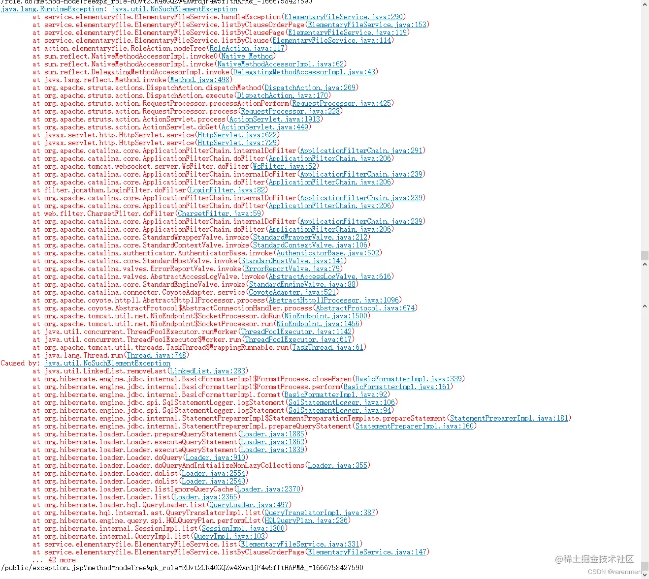 为什么这里会抛出异常,还没搞清楚。先把配置文件里的那个配置给去掉了。毕竟它对我来说帮助不大。后期考虑改造JS及RoleAction,用一次请求完成前台需要的数据。