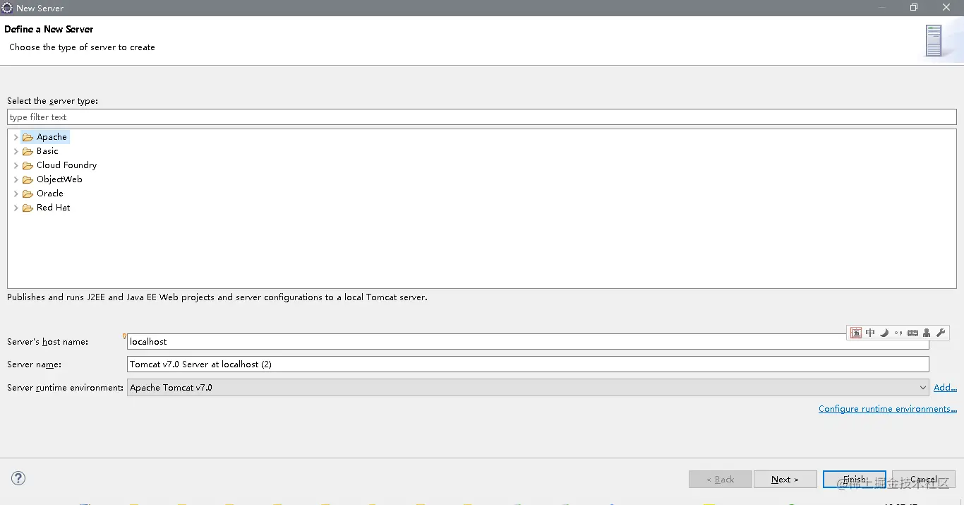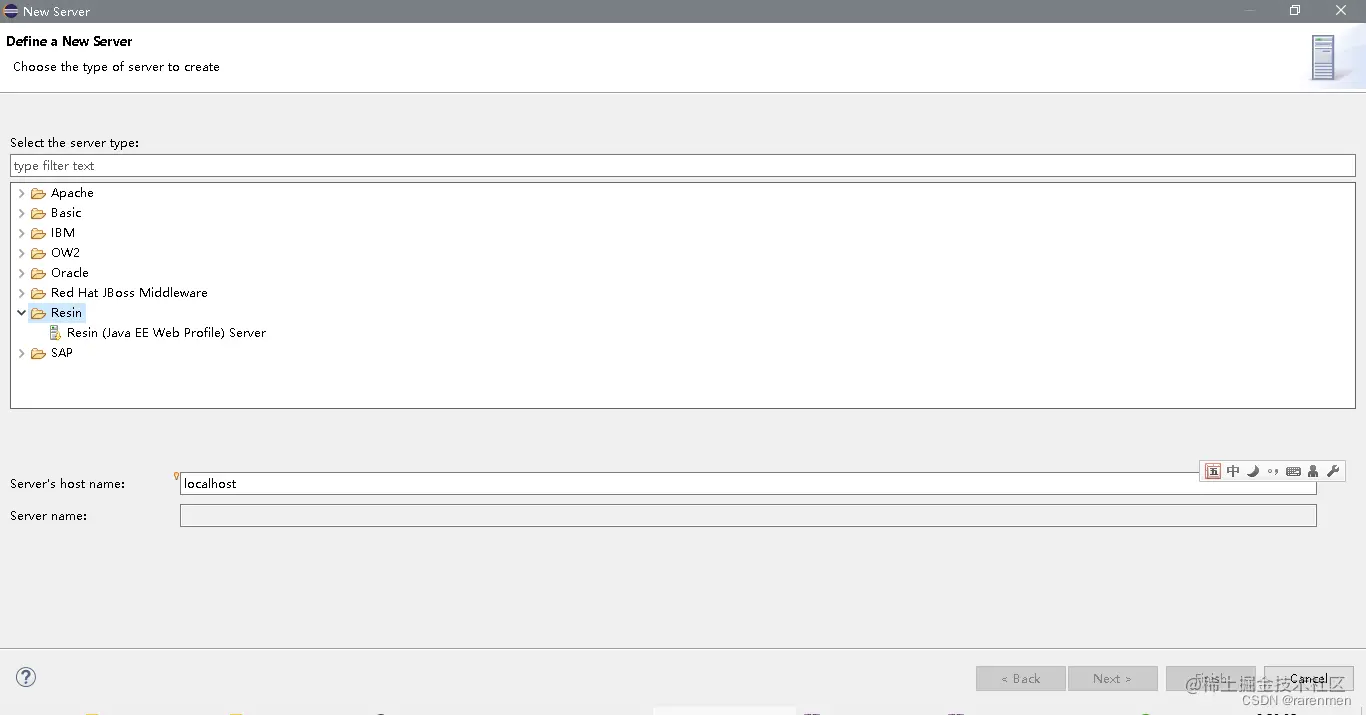 老版本日食更新之后,New Server对话框里的内容没有发生变化。那好吧,先把它放一边,研究研究看怎么能把新版本日食里搞出来Servers窗口来。试了一下,发现这个目标还是比较容易实现的,只需要在Eclipse Marketplace里下载Eclipse Web Developer Tools就好了,以下简称它EWDT吧,版本是3.26。虽然在这窗口里同样没见到Download additional server adapters链接,但它已经支持Resin。