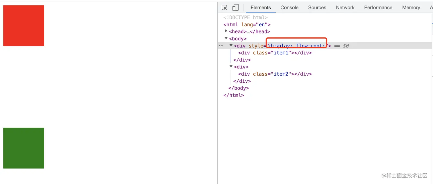 再来看看排除外部浮动具体是怎么回事: 我们先明确一个概念:正常文档流中建立的 BFC 不得与元素本身所在的块格式化上下文中的任何浮动的外边距重叠,也就是说如果一个元素建立了BFC,另外一个元素没有建立BFC,这两个元素就可能会存在外边距重叠的情况。看代码: