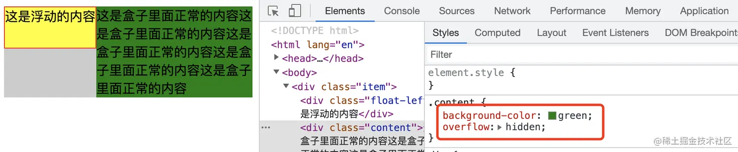 如果我们给content这容器也触发一下BFC,看的效果就是这样的: